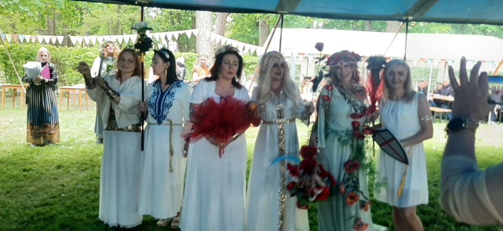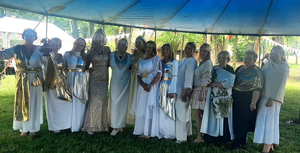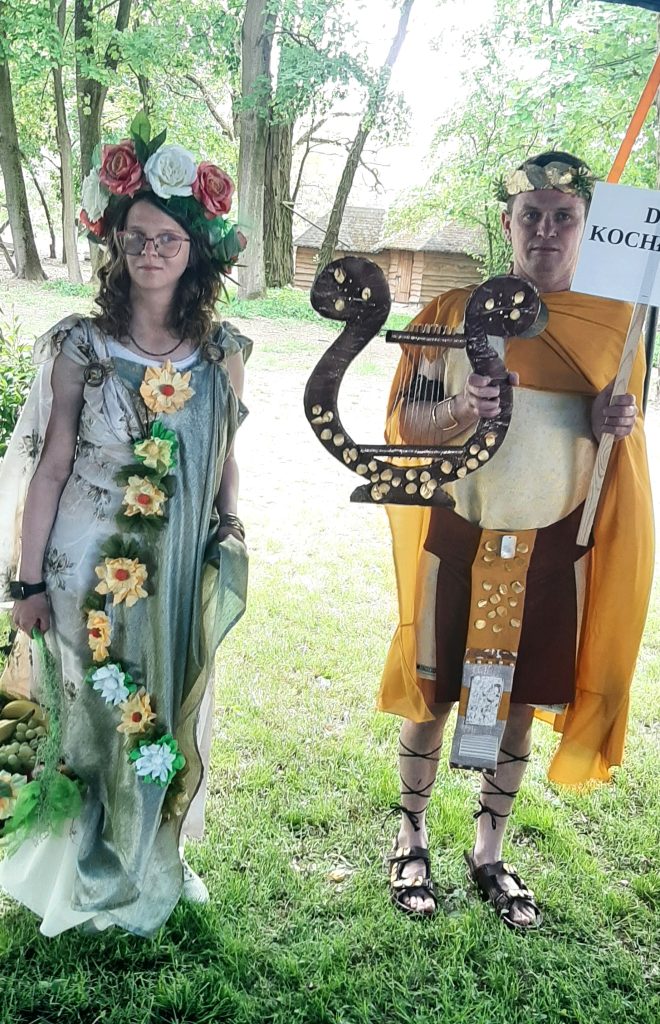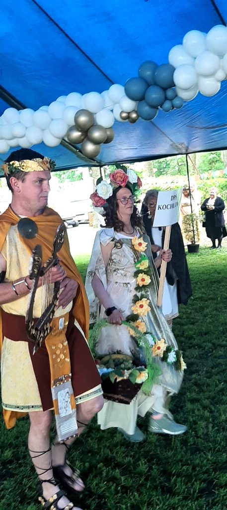 W klimacie greckich tańców, zwyczajów i tradycji mieliśmy okazję przebywać podczas tematycznej imprezy integracyjnej zorganizowanej przez dom pomocy w Psarach ” Nasze wielkie greckie konwalie”. Urzekła nas przepiękna scenografia odzwierciedlająca grecki Olimp, fantastyczne występy gospodarzy dopracowane pod względem muzycznym i choreograficznym. Gospodarze podnieśli także poprzeczkę wobec gości! Konkurs na najciekawszy strój boga i bogini wymagał nie lada kreatywności. Do zadania konkursowego przystąpiła wyposażona w kosz pełen owoców piękna Demeter – bogini urodzajów, zbiorów, płodności ziemi a także Apollo z atrybutem harfy – bóg muzyki, poezji, sztuki. Nasze wysiłki okazały się docenione, przyniosły bowiem I miejsce i dużą satysfakcję naszym reprezentantom.